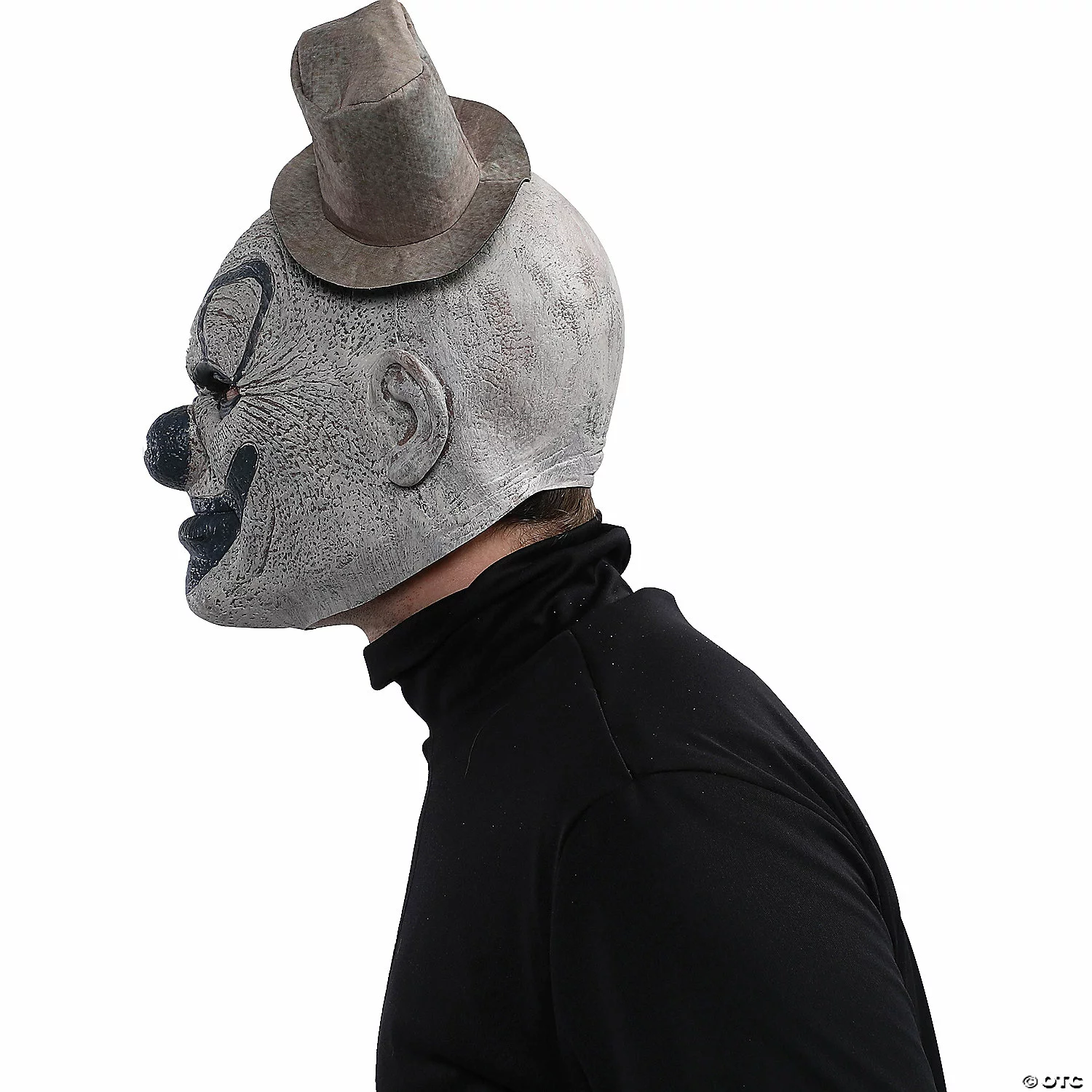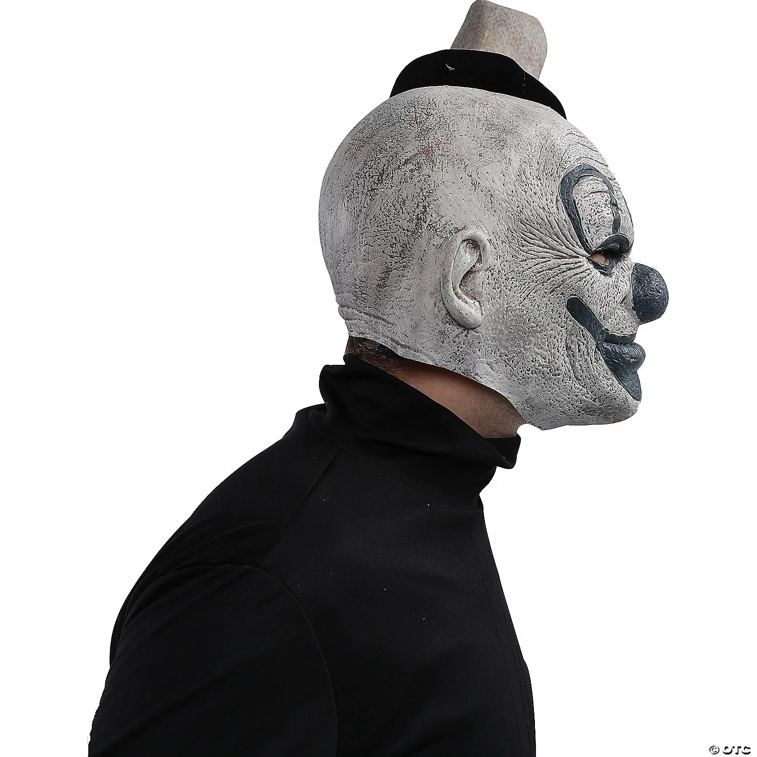 Crusty Clown Adult Mask. This carnival clown is showing you his evil grin before he does you in! Includes: Latex clown mask with make-up.. Hat is attached to the mask. Available Sizes: One size fits most adults.