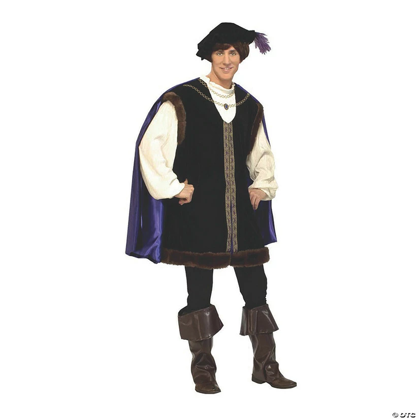 There are many unique costumes for men to dress up in for Halloween including this Noble Lord costume. This men’s costume contains a hat with a purple feather, a brown tunic and a fake fur trimmed collar. There is also a cape with a chain attached to it. The outside of the cape is brown and the inside is purple. There is a corded tie for the man to wear as well as matching dark pants. There are even boot tops to complete the nobleman look for the Halloween costume party. Includes:• Hat with feather • Cape with chain• Tunic with fur trim and collar• Corded tie• Pants• Boot topsSpecial Shipping Information: This item ships separately from other items in your order. Imported